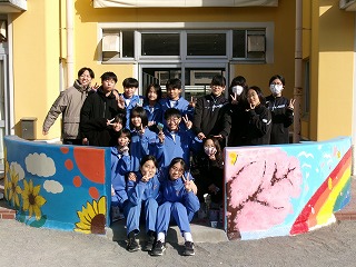浦安市立日の出中の美術部(顧問・中山浩一教諭)が昨年12月、近隣の市立日の出幼稚園で壁面アート作品を完成させ、園児や保護者から喜ばれている。