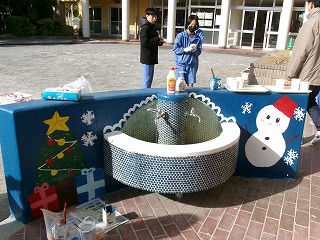 アート作品は水飲み場2カ所の表裏の4面にそれぞれ描いた春夏秋冬。原画は、部員がそれぞれ描いたものを部全体で話し合い、投票で決定。選ばれた佐藤早紀さん(1年)は「園児が喜んでくれそうなサクラやヒマワリ、虹や雪だるまなどを、明るく、分かりやすく、ゆる過ぎず、リアル過ぎないように描いた」という。